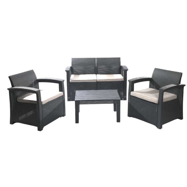 Conjunto jardin con sofa 2 plazas 2 butacas y mesa.