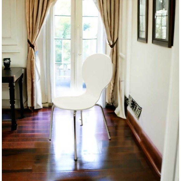Conjunto de cuatro sillas Color Negro Materiales: - Estructura de contrachapado, espesor 4,3 cm - Pies de acero cromo Dimensiones: 48 x 52 cm Altura: 86 cm - Diámetro del pie: 16 mm
